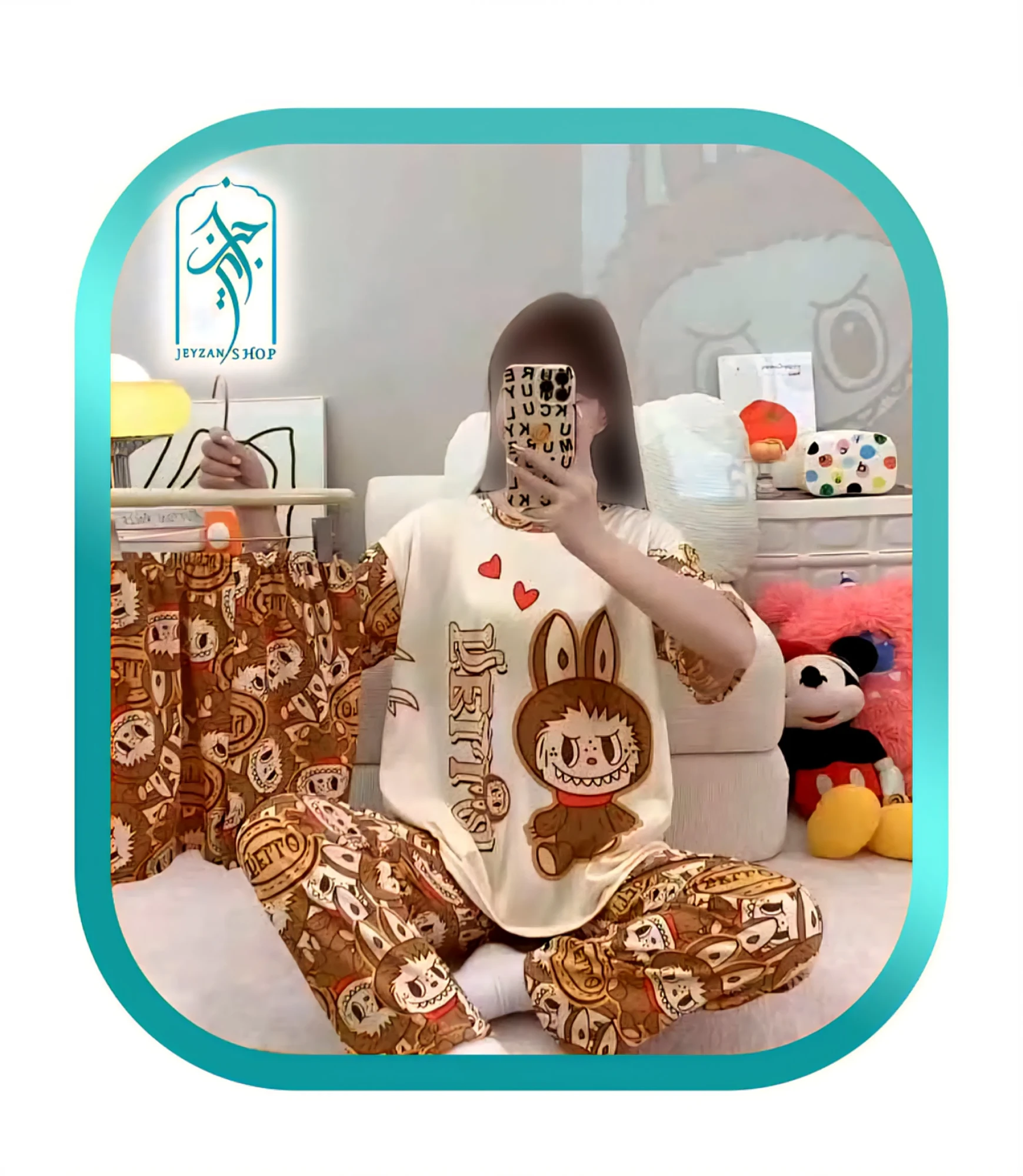 لباس ست سه تکه راحتی دخترانه و زنانه طرح لبوبو کرم کد H074دسترسی: 3 در انبار