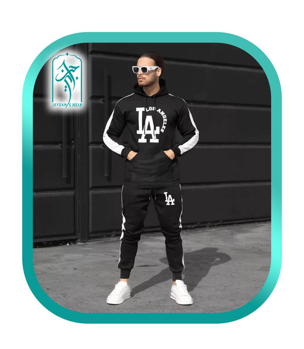 ست هودی و شلوار اسلش مردانه طرح LA مدل 054