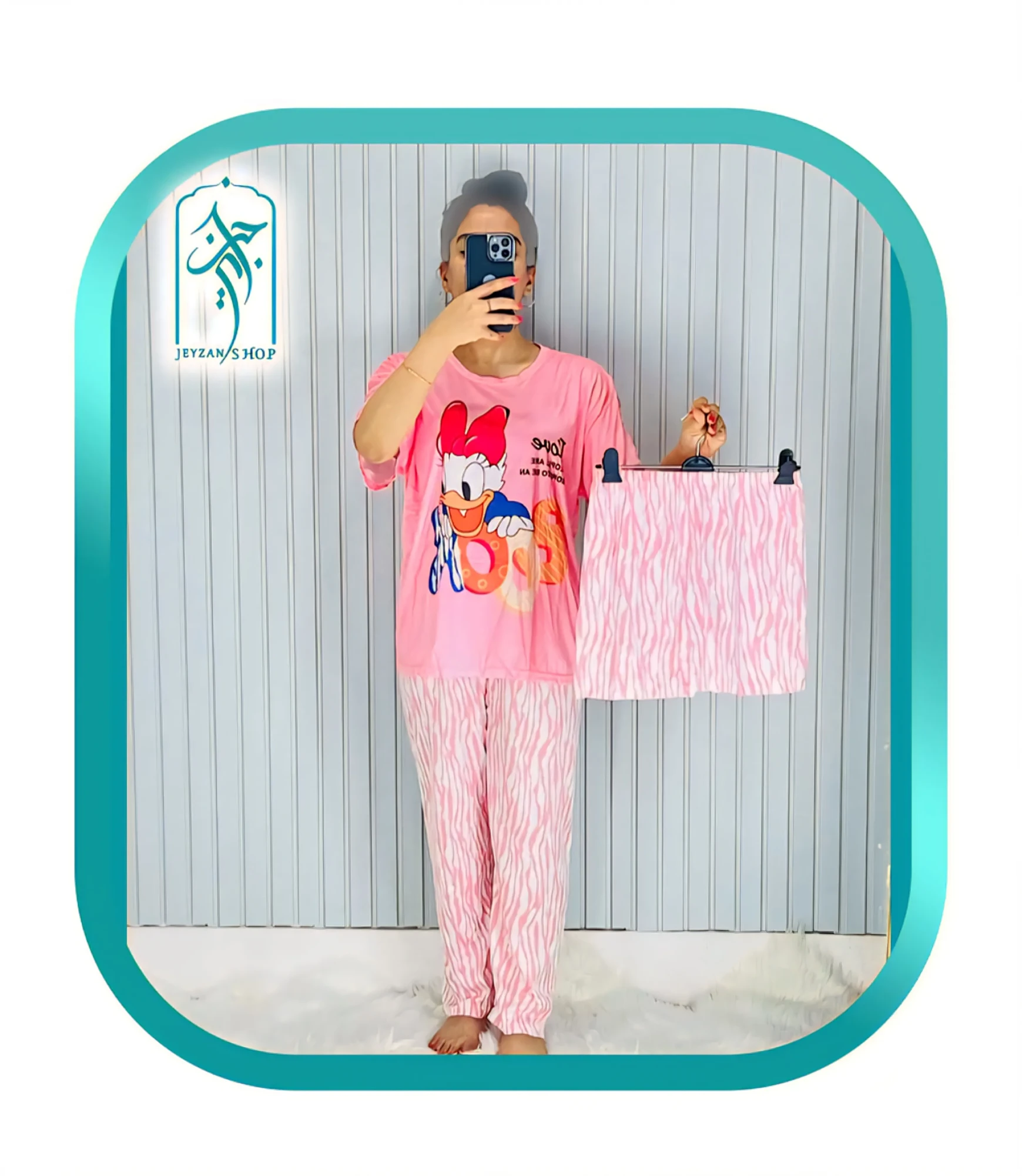 لباس ست سه تکه راحتی دخترانه و زنانه طرح اردک صورتی کد H082دسترسی: 2 در انبار